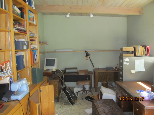 My parents chose a soft green for the office and the Master Bedroom. And, they did a soft green wash on the beautiful wood ceilings, dang it. I don’t think there’s much we can do about that.