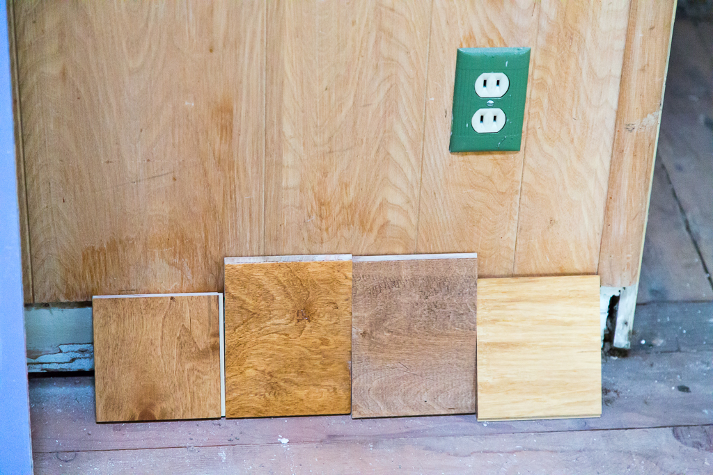 My husband had also given me some floor samples to audition.  I laid them up against the paneling.