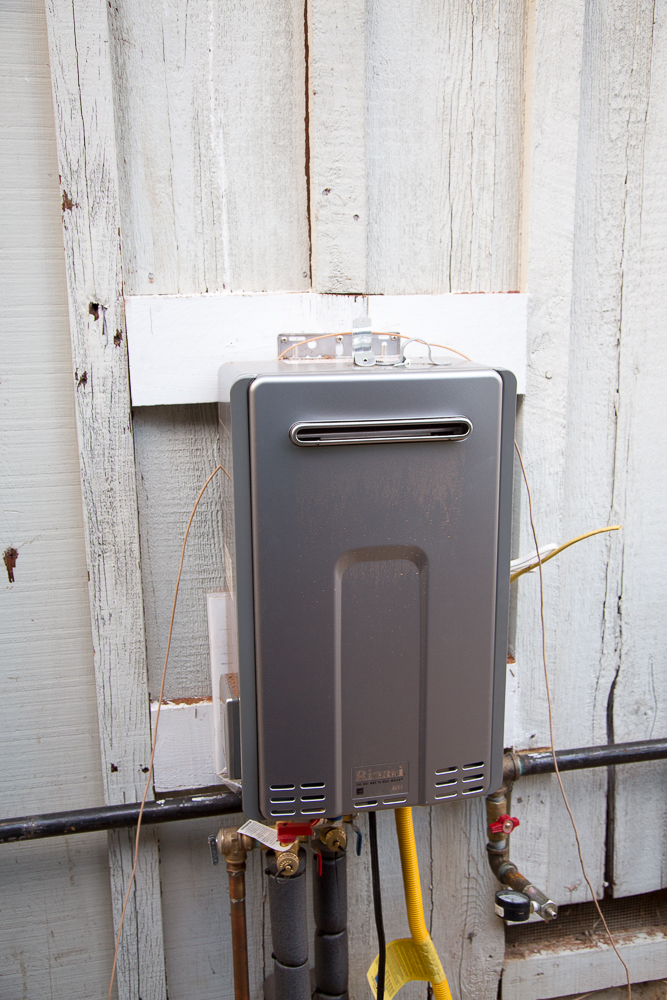 We installed a tankless water heater in the house instead of having a water heater. The previous water heater house will now go to housing our wine cooler.