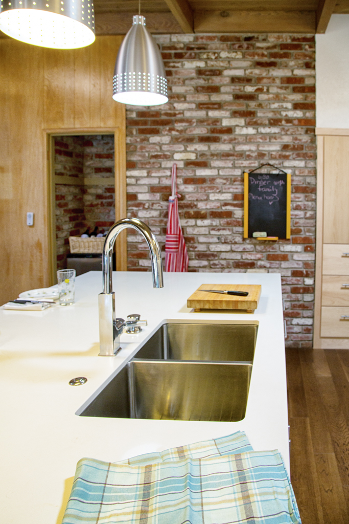 The countertops are a white quartz which is as tough as nails even though it shows every speck of dirt.