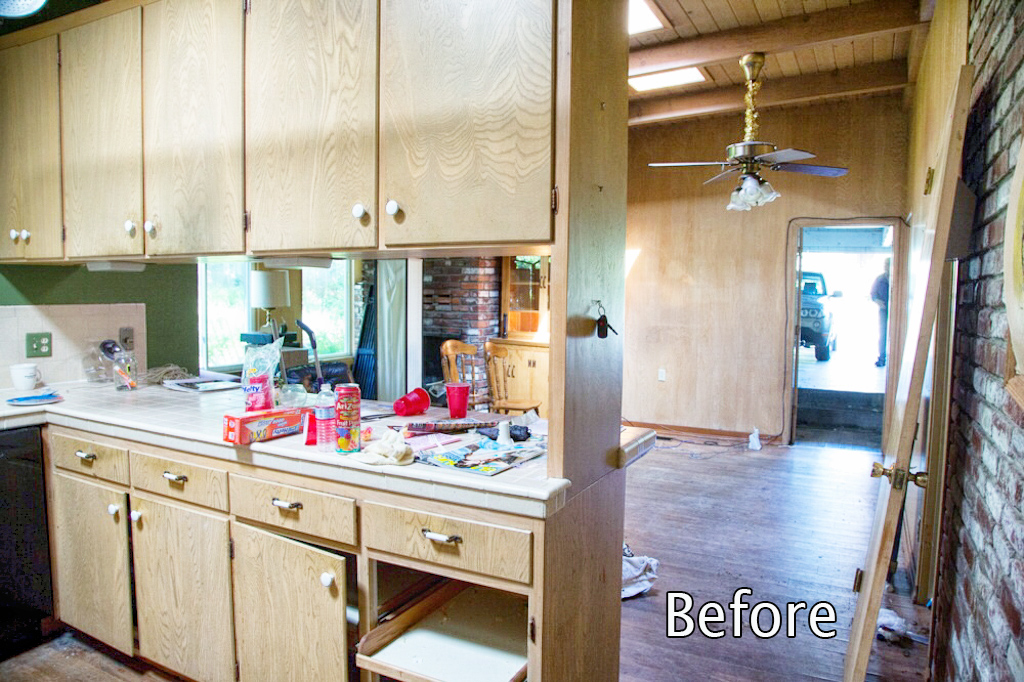 Before, looking into the family room was a tough view.  I remember my mom constantly ducking down to talk to people in the family room while she was cooking in the kitchen.