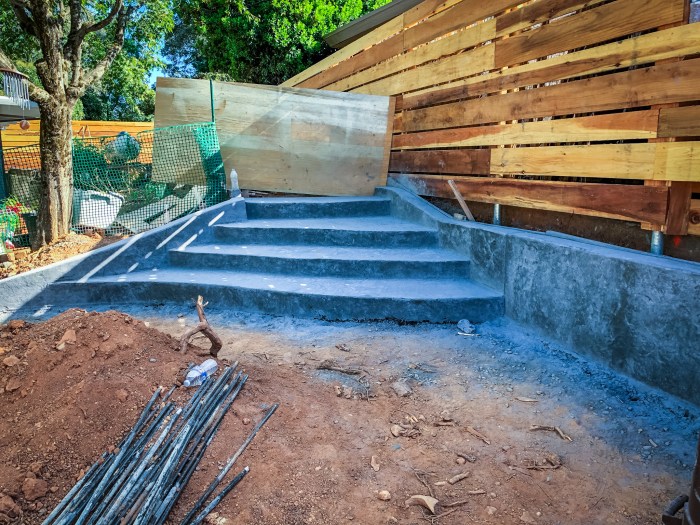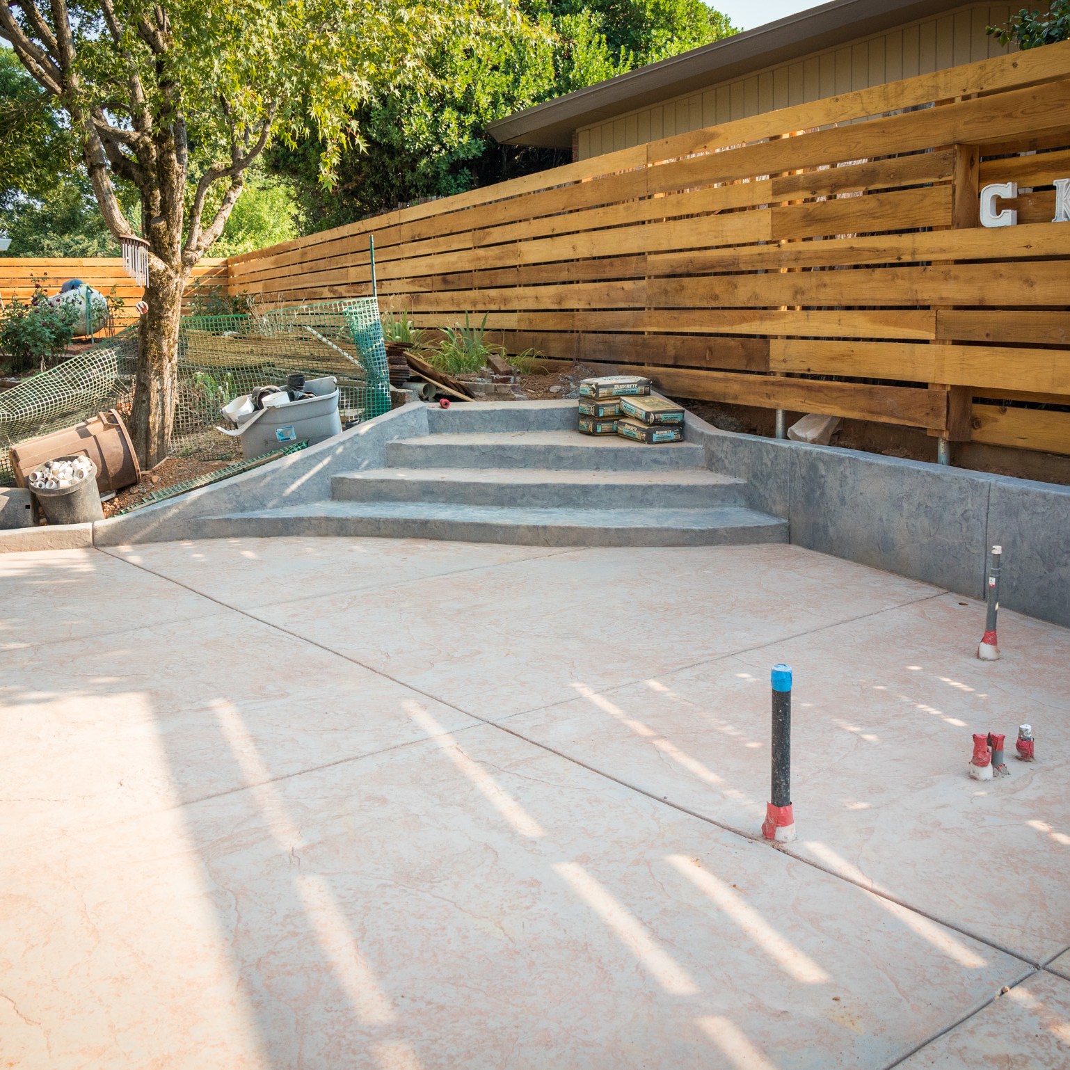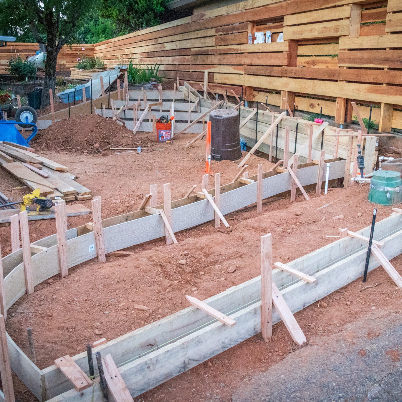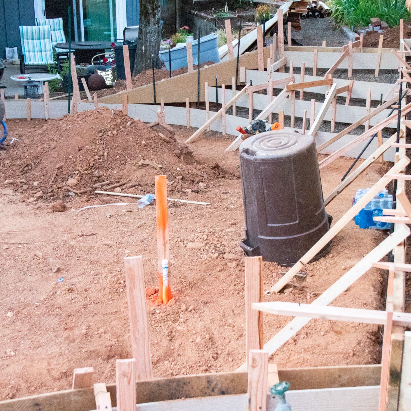 We started this adventure in February of 2018. It was a large project, indeed. Now it was June 2018. The initial forms for the patio and stairs were formed.